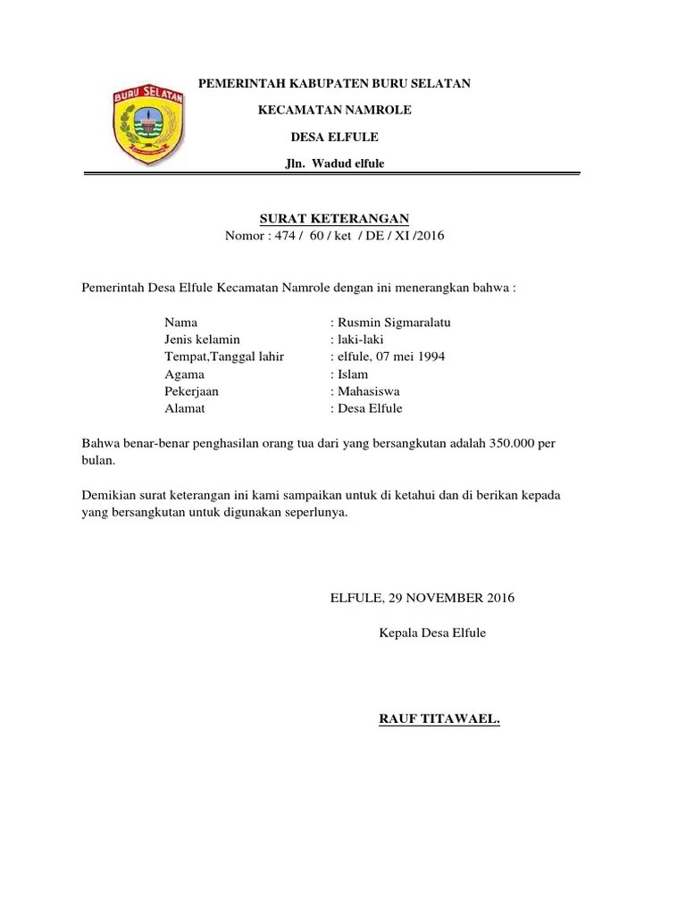 012/ 12 / solo / 2018 yang bertanda tangan dibawah ini kepala desa pontianak kecamatan palu kabupaten surabaya, menerangkan sesungguhnya bahwa : Salah satu hal yang diterangkan perusahaan adalah misalnya tentang pekerjaan para karyawannya. Menerangkan dengan sebenarnya bahwa orang yang tersebut dibawah ini : Apalagi jika berurusan dengan pembuatan acara kegiatan bakti. Nama lengkap umur murid/mahasiswa dari alamat rumah
